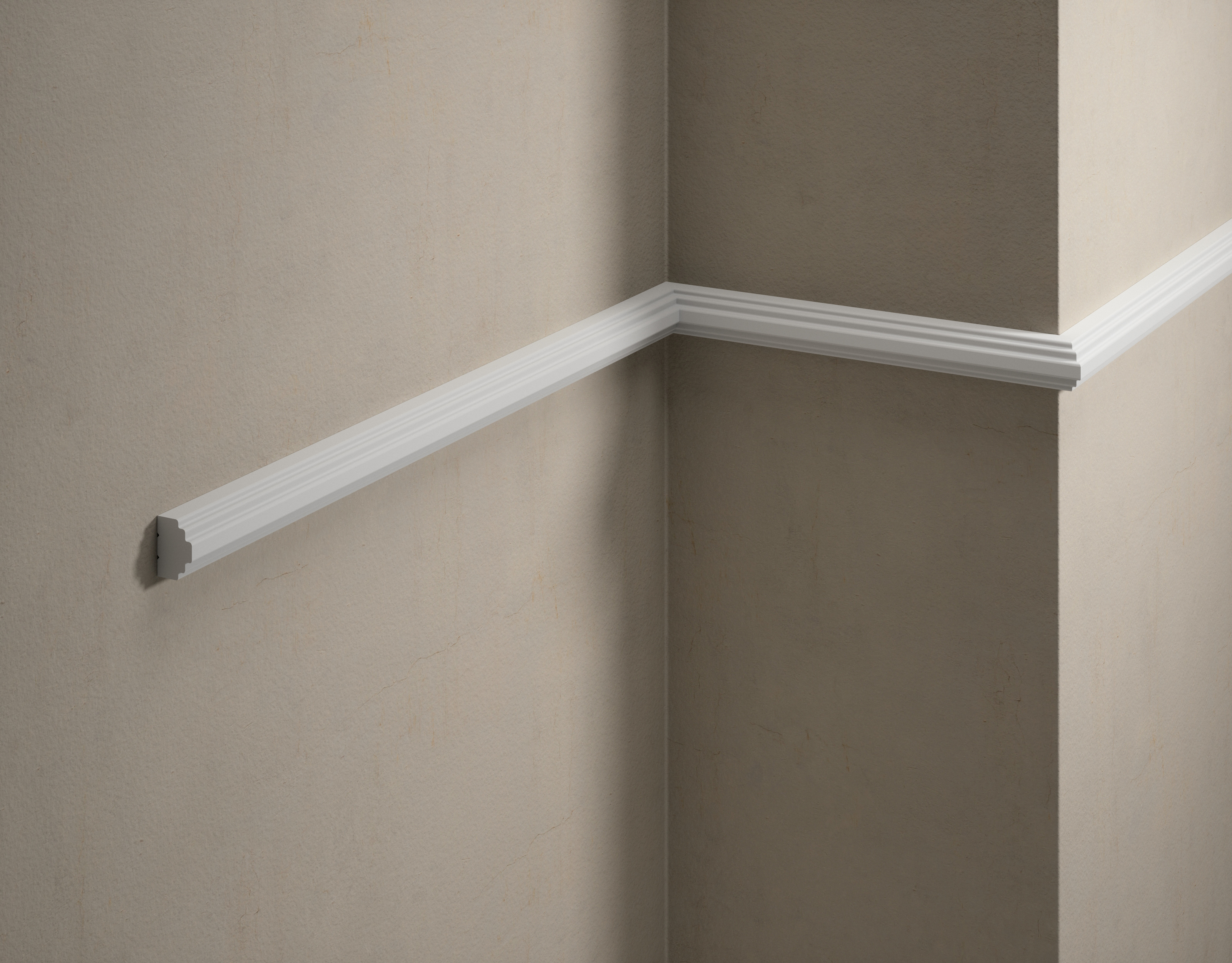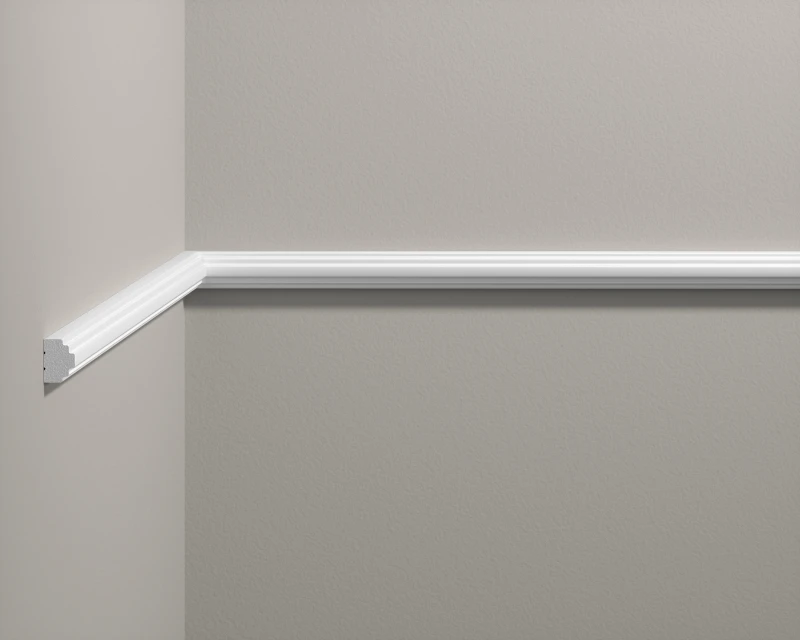 Listwa została wykonana z wysokiej gęstości polistyrenu, co gwarantuje najwyższą jakość użytkową mimo jej smukłej formy: