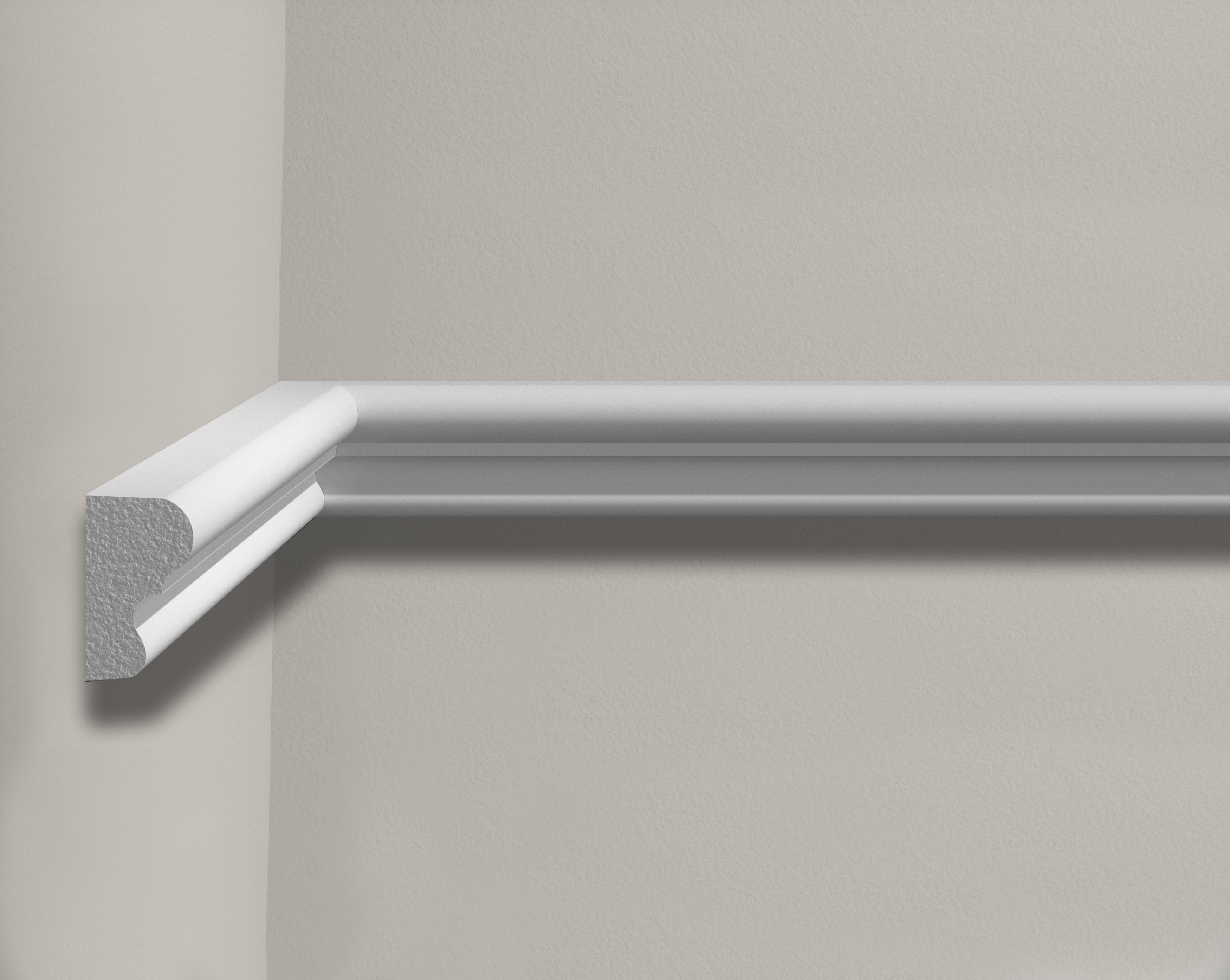 Gotowa do malowania: Powierzchnia listwy jest fabrycznie zagruntowana na biało. Zapewnia to doskonałą przyczepność farb wodnych i ułatwia uzyskanie idealnie gładkiej powłoki kolorystycznej.