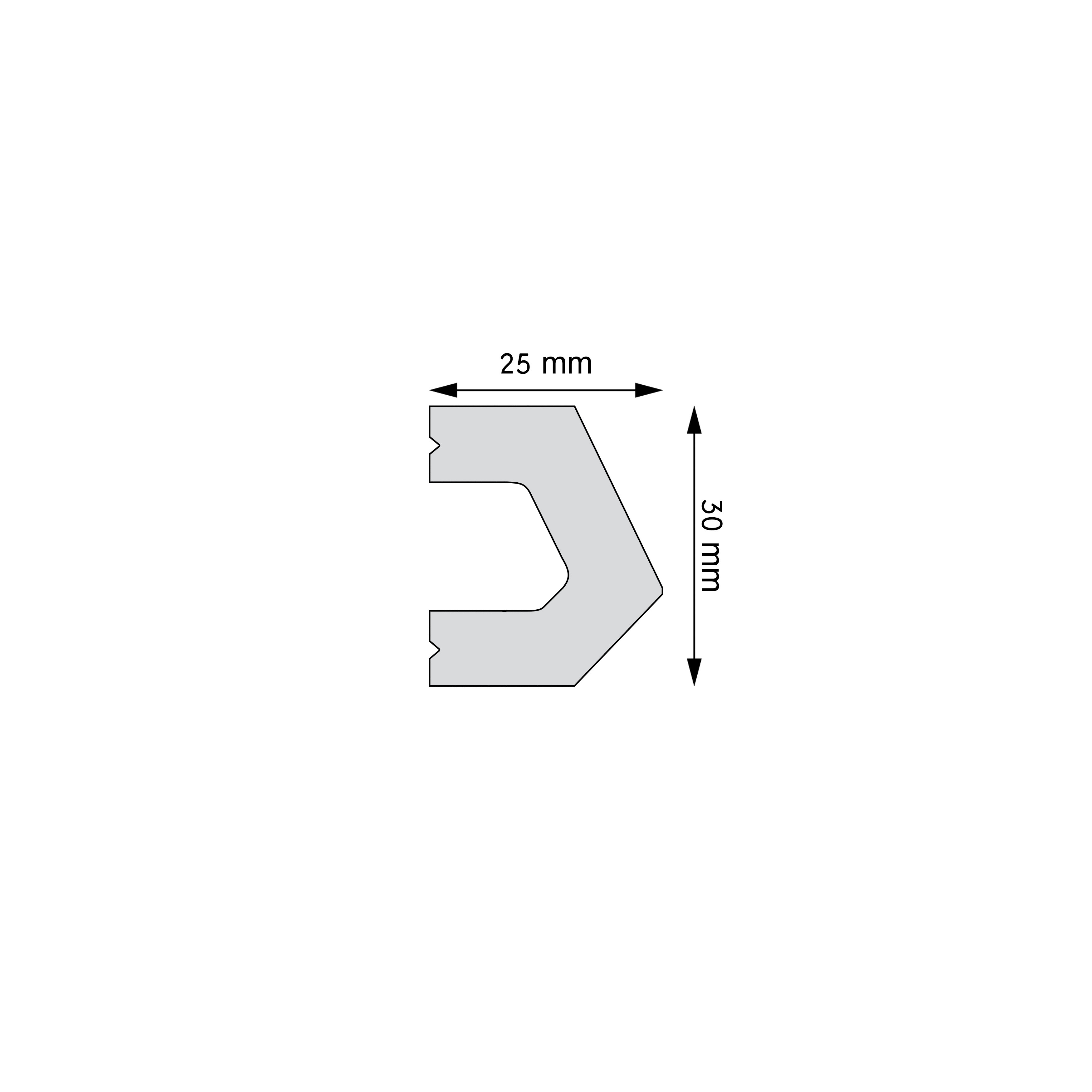 Listwa ścienna Creativa LNG-64 to propozycja dla miłośników nowoczesnej architektury wnętrz i zdecydowanych, geometrycznych form. Profil wyróżnia się unikalnym przekrojem przypominającym ostro ścięty trapez lub diamentowy szpic. Dzięki mocno zarysowanej krawędzi frontowej, listwa tworzy dynamiczne światłocienie, dodając ścianom surowej elegancji. Przy wysokości 3 cm oraz znacznej grubości 2,5 cm, model ten wyraźnie odcina się od płaszczyzny ściany, stanowiąc mocny, trójwymiarowy akcent dekoracyjny.