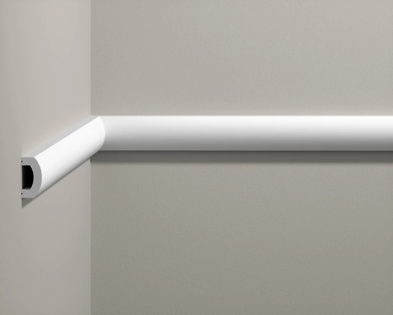 Listwa ścienna Creativa LNG-59 to kwintesencja nowoczesnego minimalizmu. Profil ten charakteryzuje się czystą, półkolistą formą bez żadnych dodatkowych zdobień. Kształt klasycznego półwałka sprawia, że listwa idealnie wtapia się w przestrzeń, wprowadzając do wnętrza spokój, harmonię i miękkie linie. Przy wysokości 4 cm oraz grubości 2 cm, stanowi ona wyraźny, ale niezwykle subtelny detal architektoniczny, który doskonale odnajdzie się w stylach takich jak modern classic, skandynawski, loftowy czy minimalistyczny.