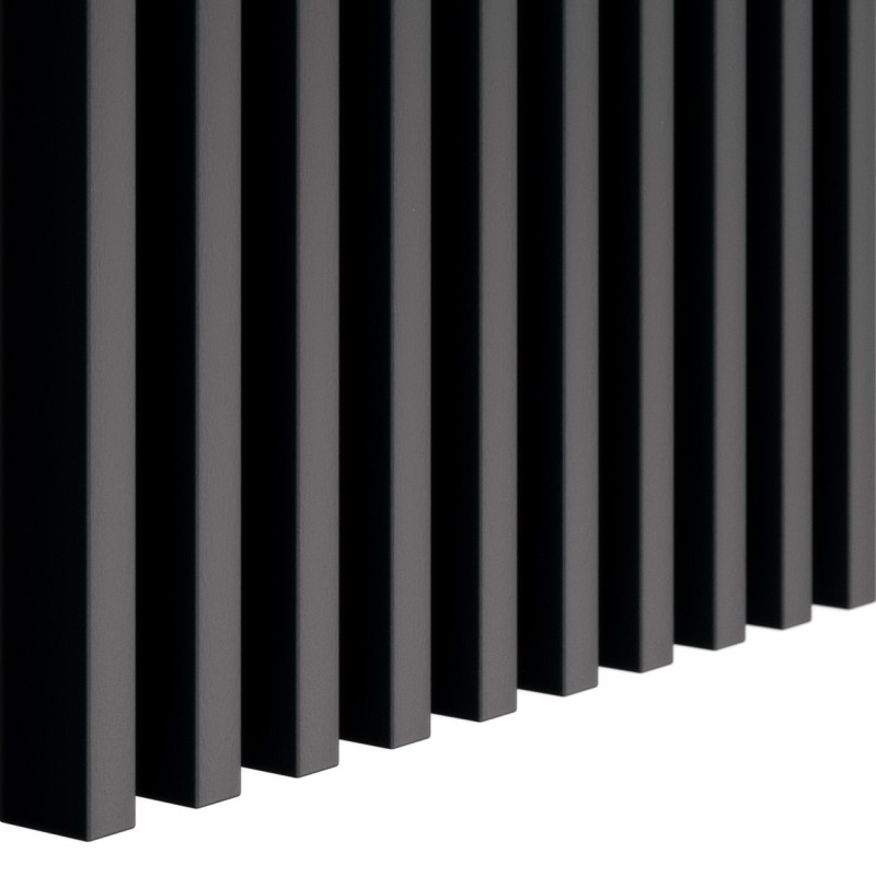 Lamele z kolekcji Mini w kolorze czarnego matu to propozycja dla odważnych miłośników nowoczesnego designu i luksusowego minimalizmu. Głęboka, bezrefleksyjna czerń w połączeniu z filigranowym przekrojem listew (16x30 mm) tworzy niezwykle elegancką, graficzną strukturę na ścianie. To idealny wybór, aby nadać wnętrzu głębi i prestiżu, zachowując jednocześnie lekkość formy, która nie przytłacza pomieszczenia.