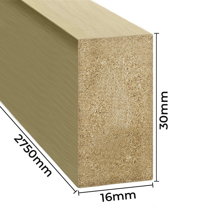 Wysoka jakość MDF Premium: Rdzeń z gęstej płyty MDF gwarantuje idealną prostotę listew, a wysokiej jakości złoty laminat zapewnia trwałość koloru i blasku przez lata.