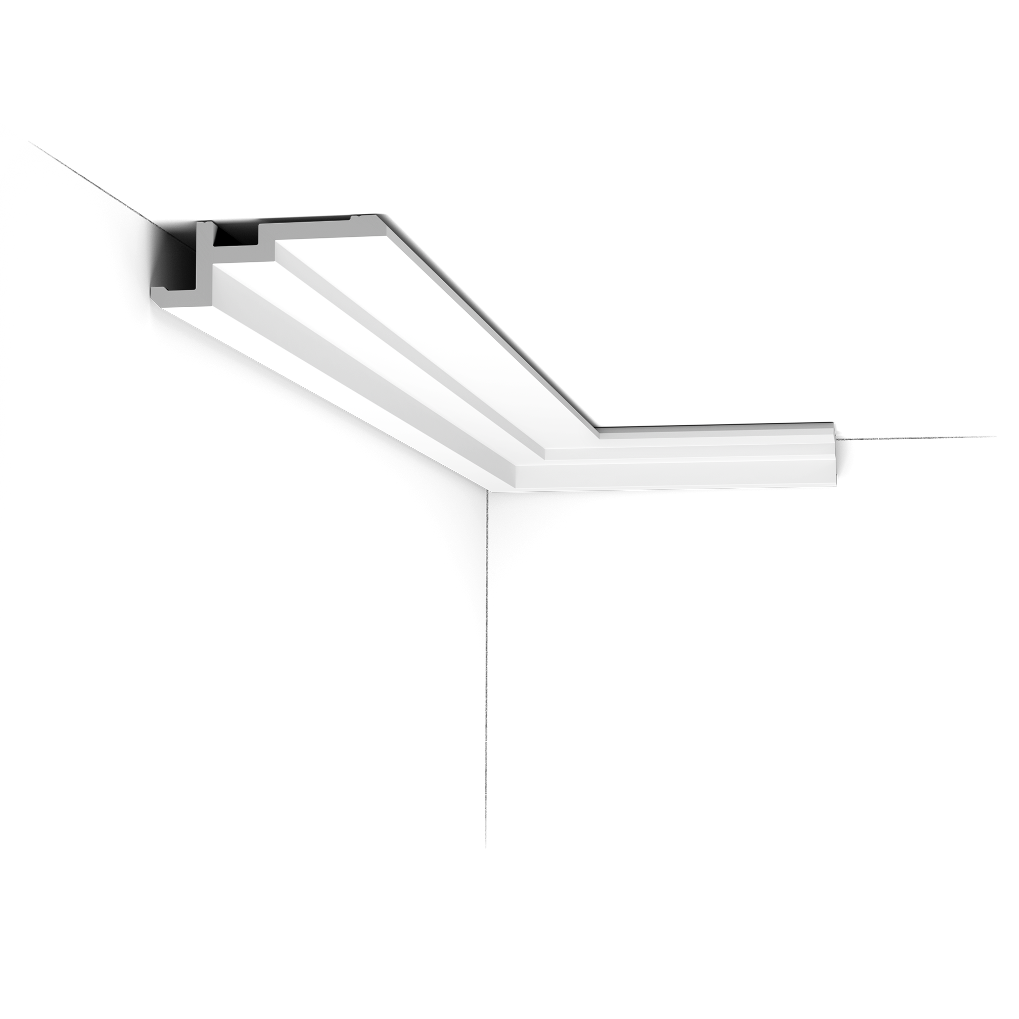 Schodkowy Design: Trzystopniowy, kaskadowy profil tworzy wyraźne linie cienia, co nadaje sufitowi trójwymiarowości i nowoczesnej dynamiki.